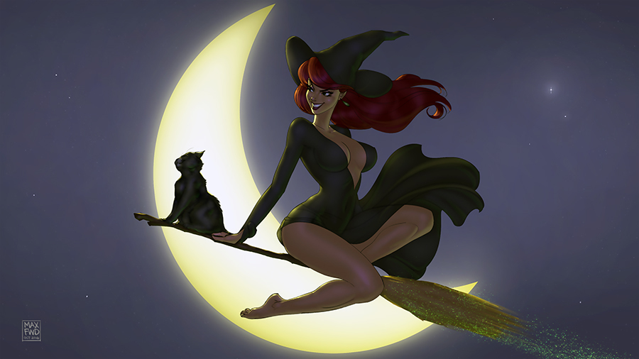 Another bewitching HD Marissa desktop wallpaper for you! She and her feline companion are out for a Halloween joyride. Donate a dollar and she'll cast her spell on you. Yes!
